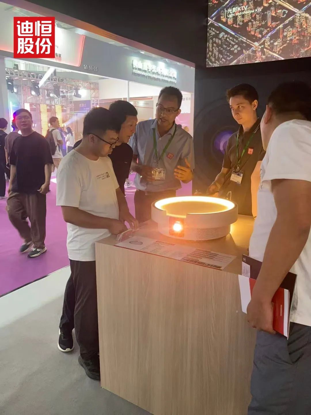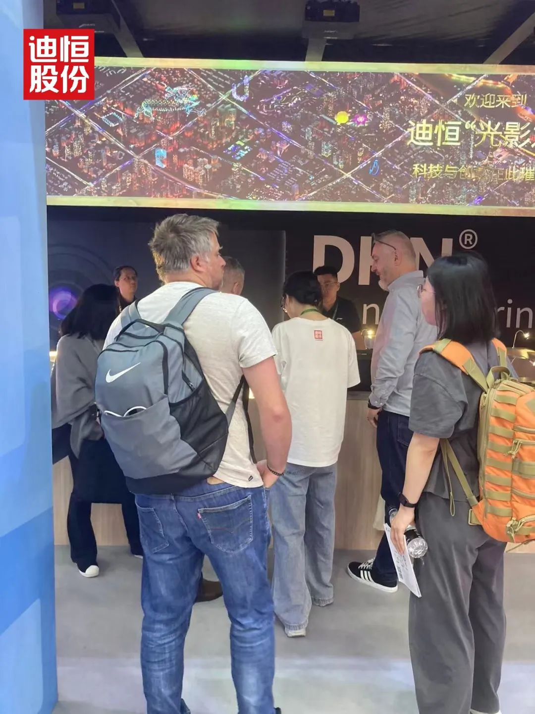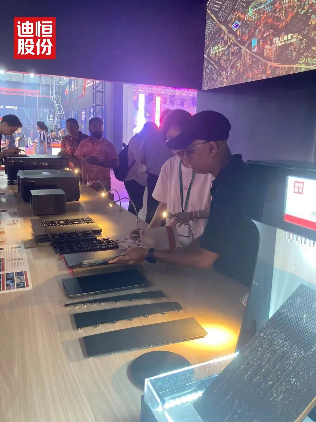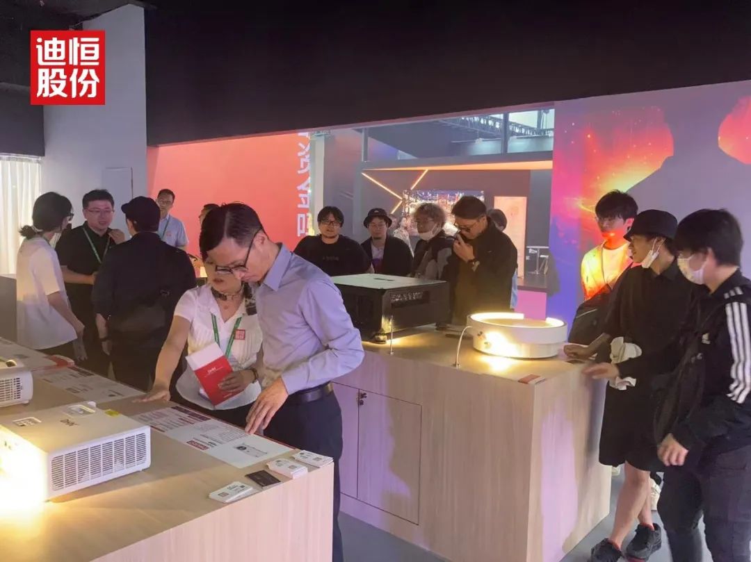 展馆内,迪恒展台的“光影之城”如同一块磁石,吸引着全球目光。从清晨开馆到傍晚闭展,人流始终络绎不绝。工作人员笑称:“连喝口水的时间都没有。”