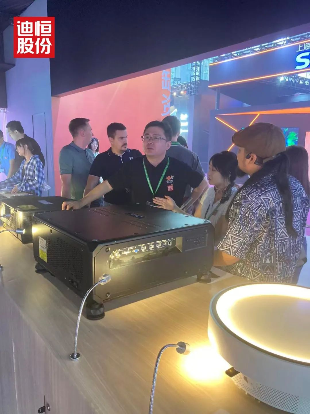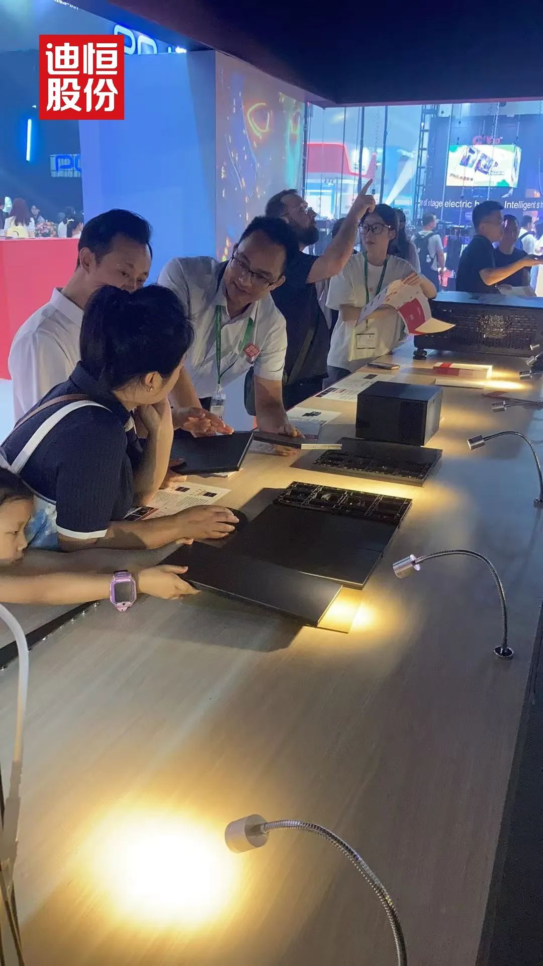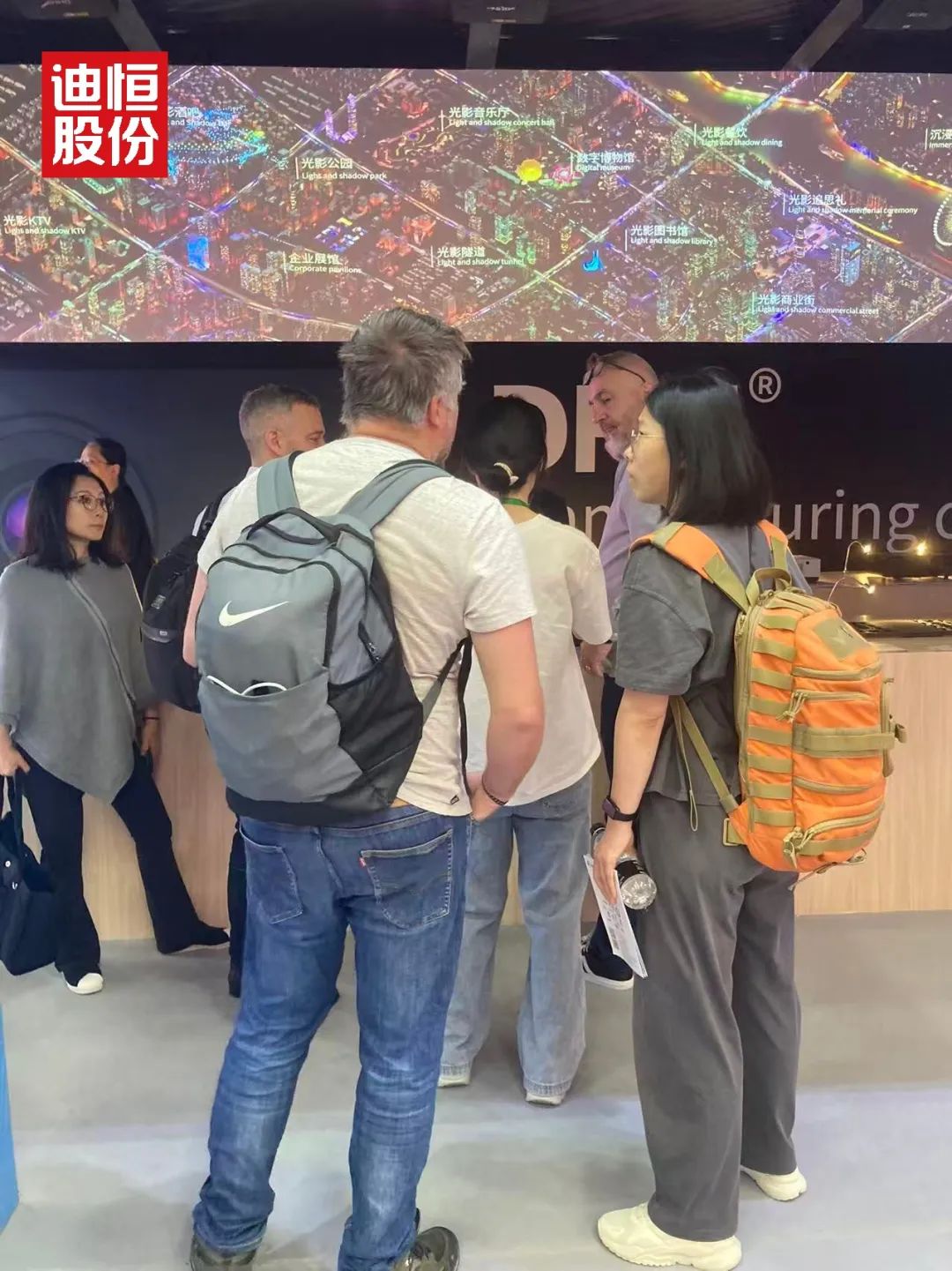 展馆内,迪恒展台的“光影之城”如同一块磁石,吸引着全球目光。从清晨开馆到傍晚闭展,人流始终络绎不绝。工作人员笑称:“连喝口水的时间都没有。”